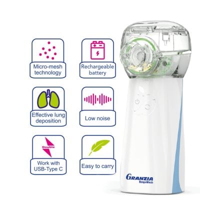استمتع براحة التنفس في أي وقت مع جهاز Granzia BreezMesh، الحل الأمثل لعلاج حالات الربو والحساسية واحتقان الجهاز التنفسي. الجهاز يعمل بتقنية الشبكة الدقيقة (Mesh) التي تضمن توصيل فعال للدواء بفضل تحويله إلى جزيئات دقيقة جداً، مناسبة لجميع الأعمار.